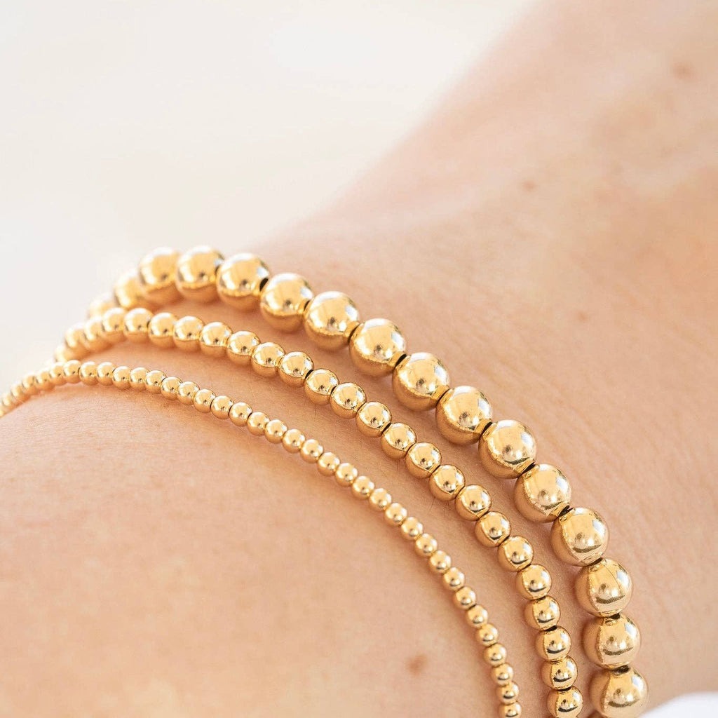 A timeless classic, The Beaded Bracelet radiates warmth and elegance with its golden beaded design. Minimal yet luminous, it’s the perfect everyday piece—effortlessly complementing any look from sunrise to sunset. Available in sizes 2mm, 3mm & 4mm beads (Model wearing size 3mm)