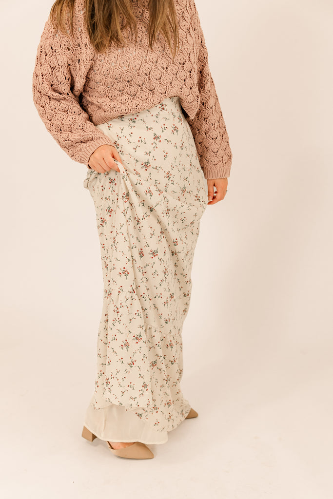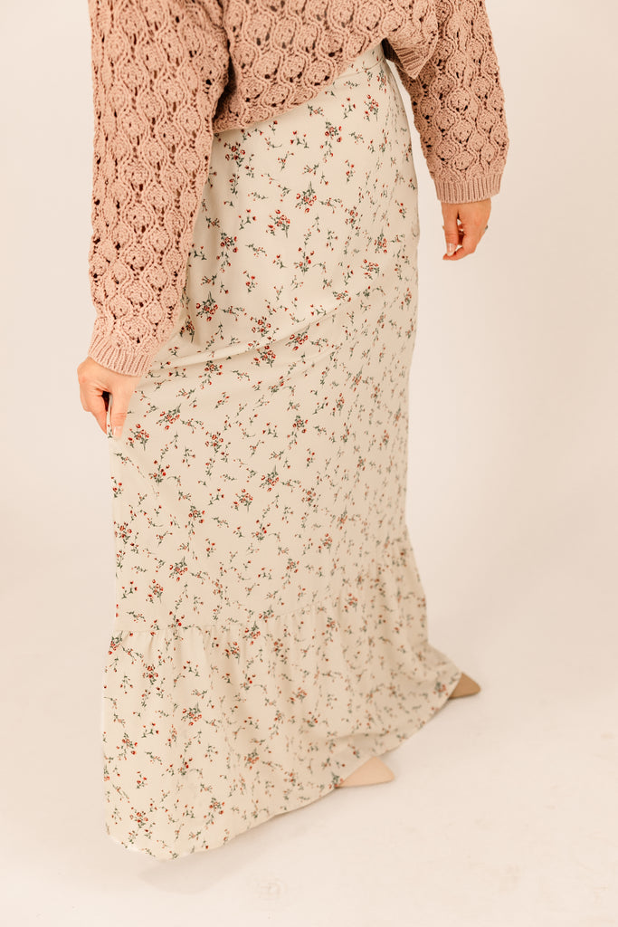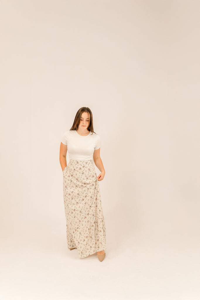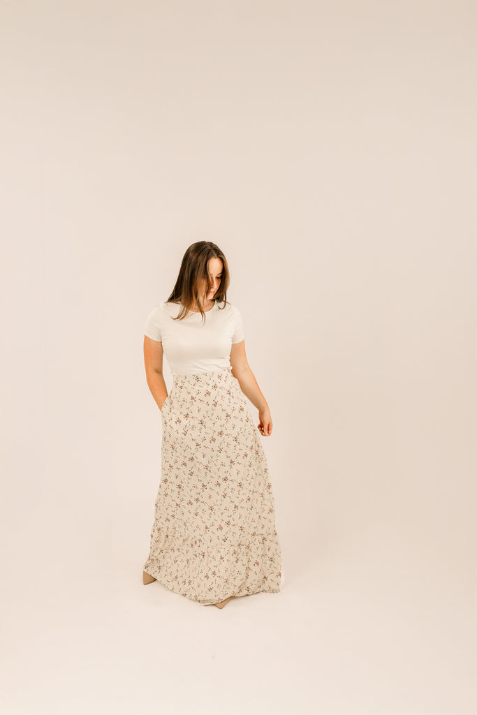The Havyn Floral Lined Maxi Skirt is the perfect blend of effortless charm and feminine grace! Featuring a delicate floral print, this flowing true maxi skirt offers a timeless, romantic look that suits any occasion. Thoughtfully designed with a fully lined interior for extra coverage, it ensures comfort and confidence with every wear. The elastic-back waistband provides a flexible fit, while the hidden side zipper allows for easy dressing. Its lightweight fabric drapes beautifully, creating an elegant silhouette with graceful movement. Whether you're dressing up for a special occasion, heading to church, or adding a touch of sophistication to your everyday wardrobe, the Havyn Maxi Skirt is a versatile staple that pairs seamlessly with blouses, sweaters, or layering essentials.