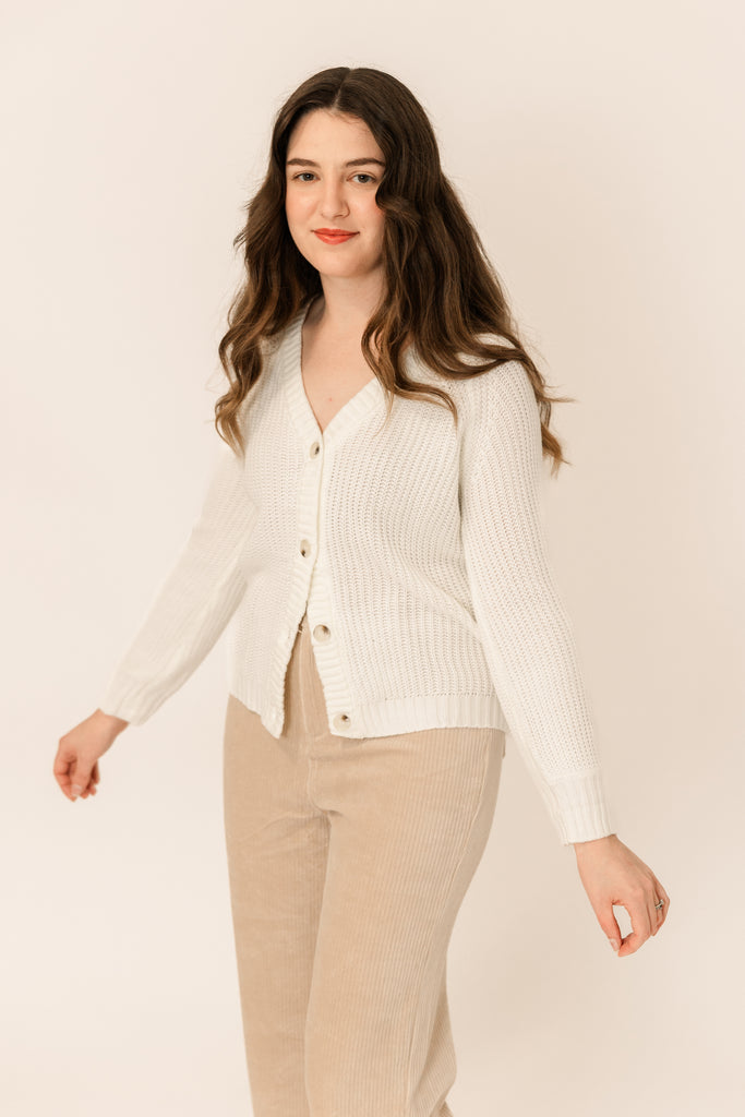 The Chloe Cardigan is your go-to cozy layer for chilly days. With its chunky knit texture, oversized buttons, and relaxed fit, it’s effortlessly chic and endlessly comfortable. Pair it with denim or over a dress for that perfectly undone, cozy-girl look all winter long. ❄️