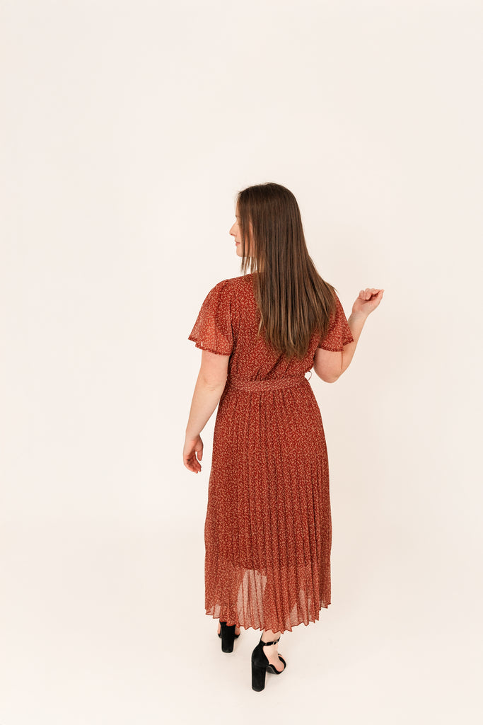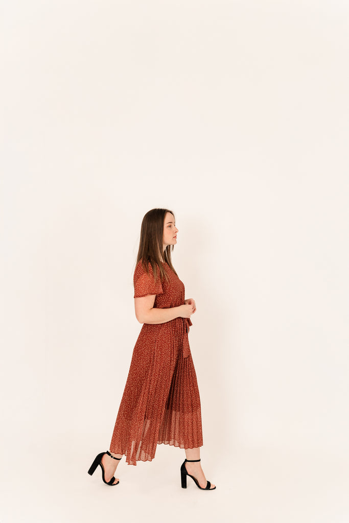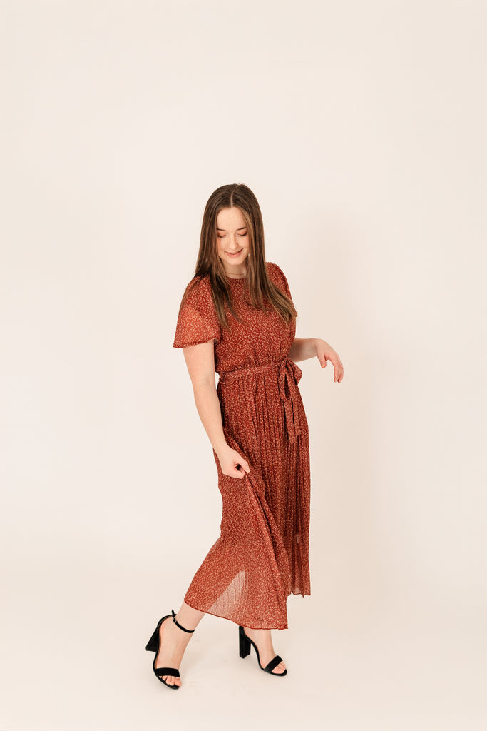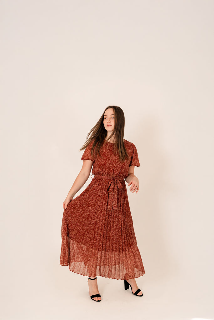 This dress aims at sophistication and lands right between formal and easy. It comes in a beautiful, bright burgundy color, and boasts a pleated skirt and flowy sleeves. It’s fully lined and sits light. Throw on a pair of heels and you’ll feel like the First Lady!