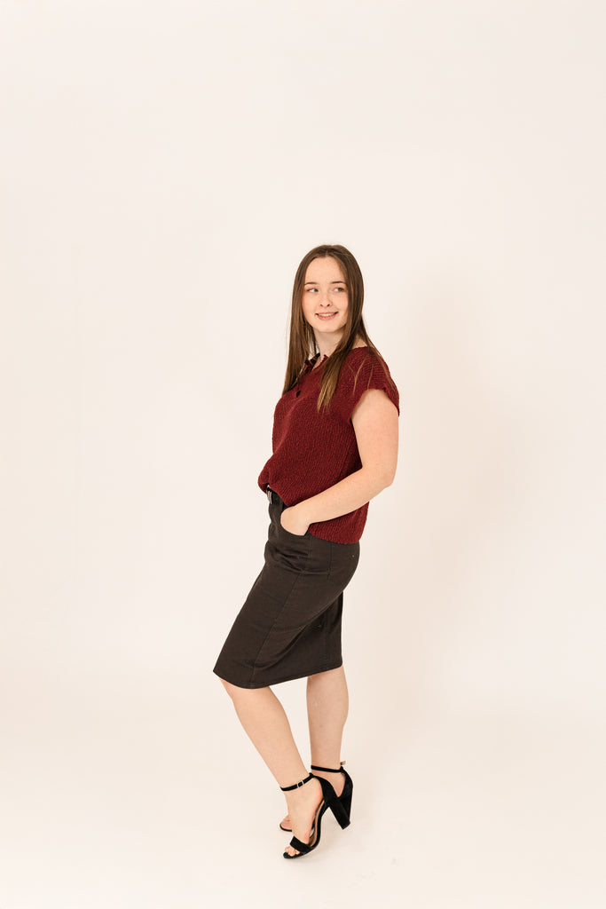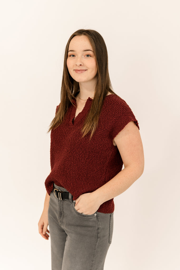 This wine coloured, 100% cotton sweater top exudes a lived-in look that meets everyday polish. You’ll love it for its effortless versatility-pair it with soft knits for weekend ease or tuck into trousers or a skirt for a refined mood. This piece proves comfort and charm can coexist.