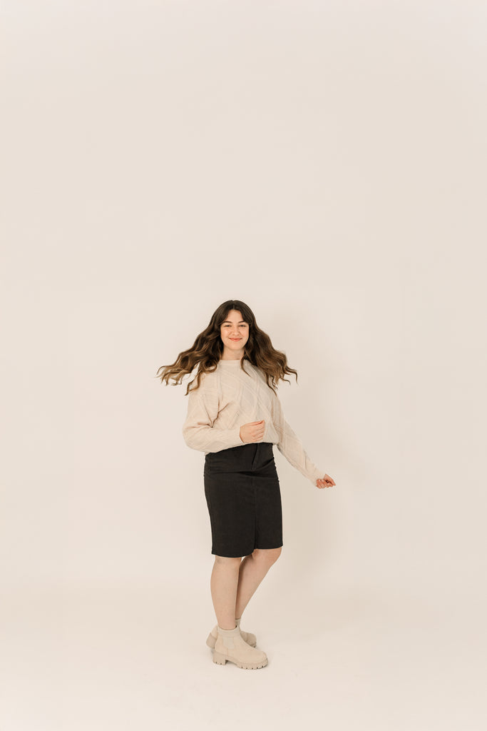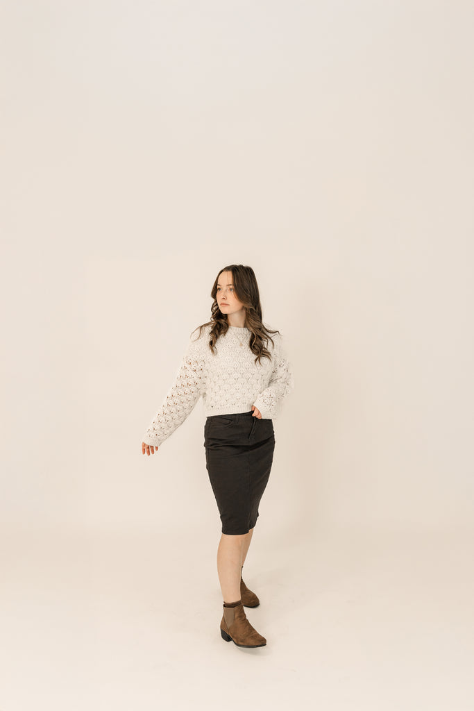 The Black Denim Skirt is a timeless wardrobe essential with a polished finish. Designed with a modest midi length and a fully finished hem, this skirt offers structure and stretch for a flattering, all-day fit. The classic black wash pairs effortlessly with your favorite layers, while the no-slit design keeps the look clean, comfortable, and confidently modest. * Product Details | Pockets, No Slit * Style | Midi * Color | Black SIZING TIPS * Fit | Semi-Fitted, * Stretch | Stretchy * Model | True to Size