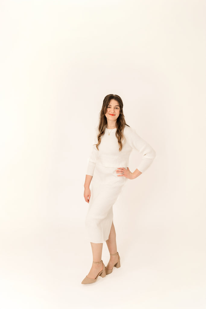 Effortless elegance meets cozy comfort in this ribbed knit set. Featuring a fitted long-sleeve top and matching midi skirt, it hugs in all the right places while keeping things soft and sophisticated. Perfect for winter brunches, holiday gatherings, or cozy evenings in — it’s the definition of chic simplicity. ❄️